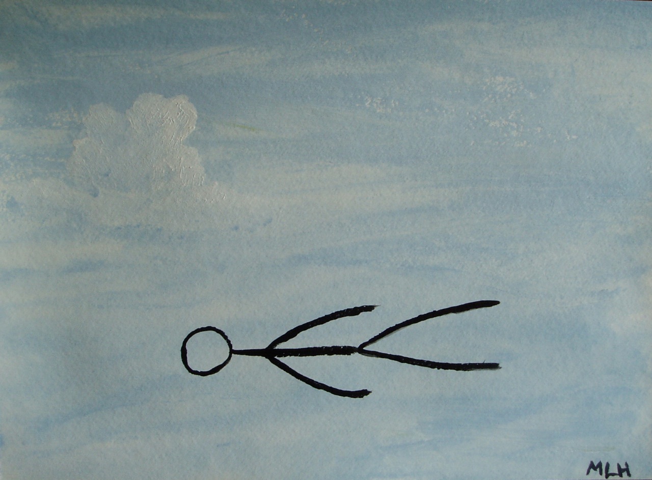To feed my obsession with those yoga sketches, because that cloud outside my kitchen window intrigued me this afternoon, and to answer lucavanessa‘s question of last week, I painted a bit today. This where I go in savasana.
