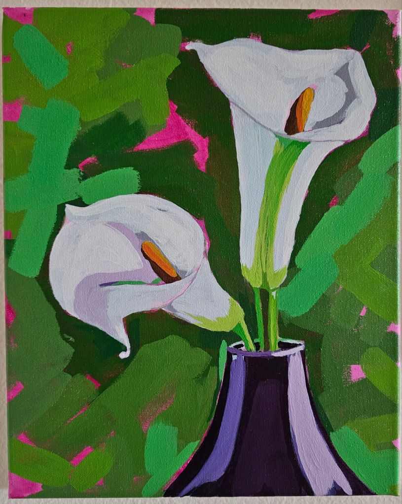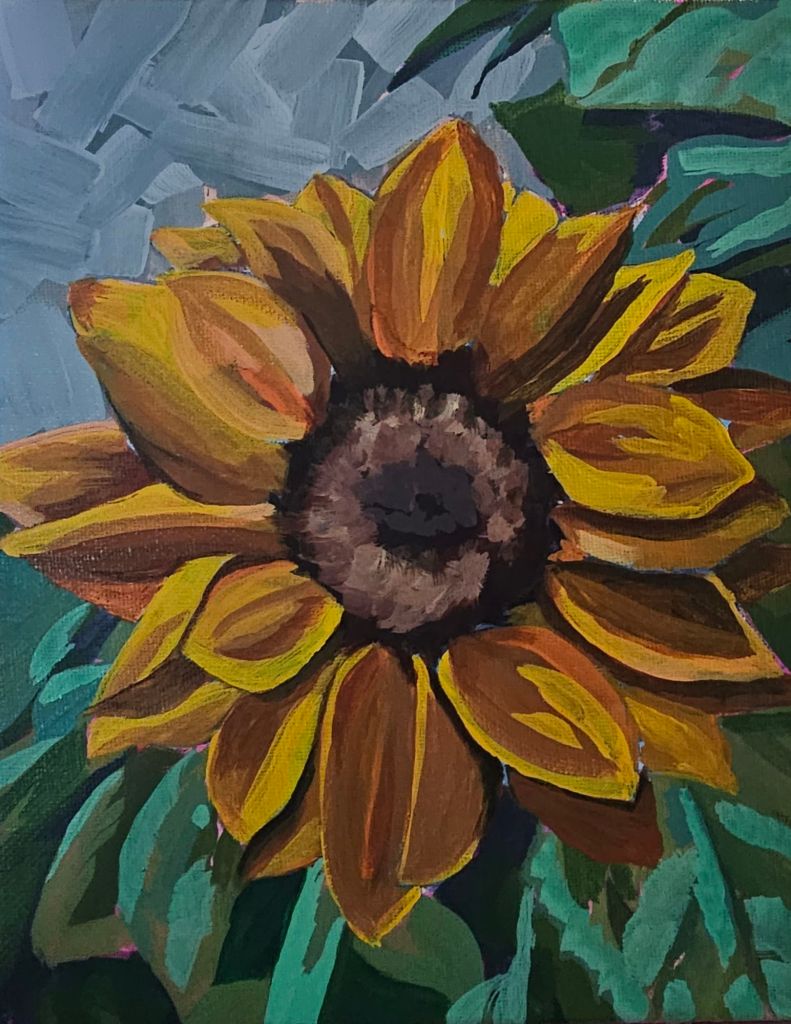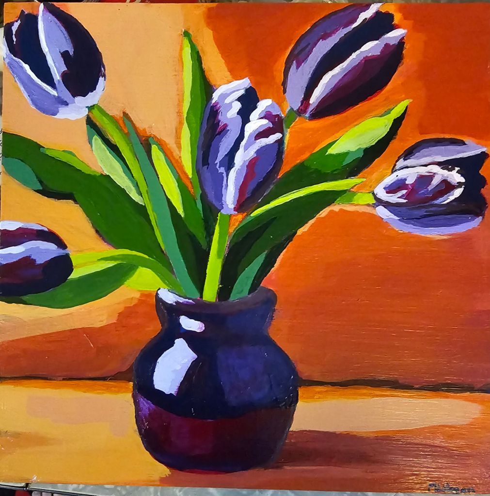 Practicing capturing water in fluid acrylics.Sky work.Purple Tulips for PatSunflower